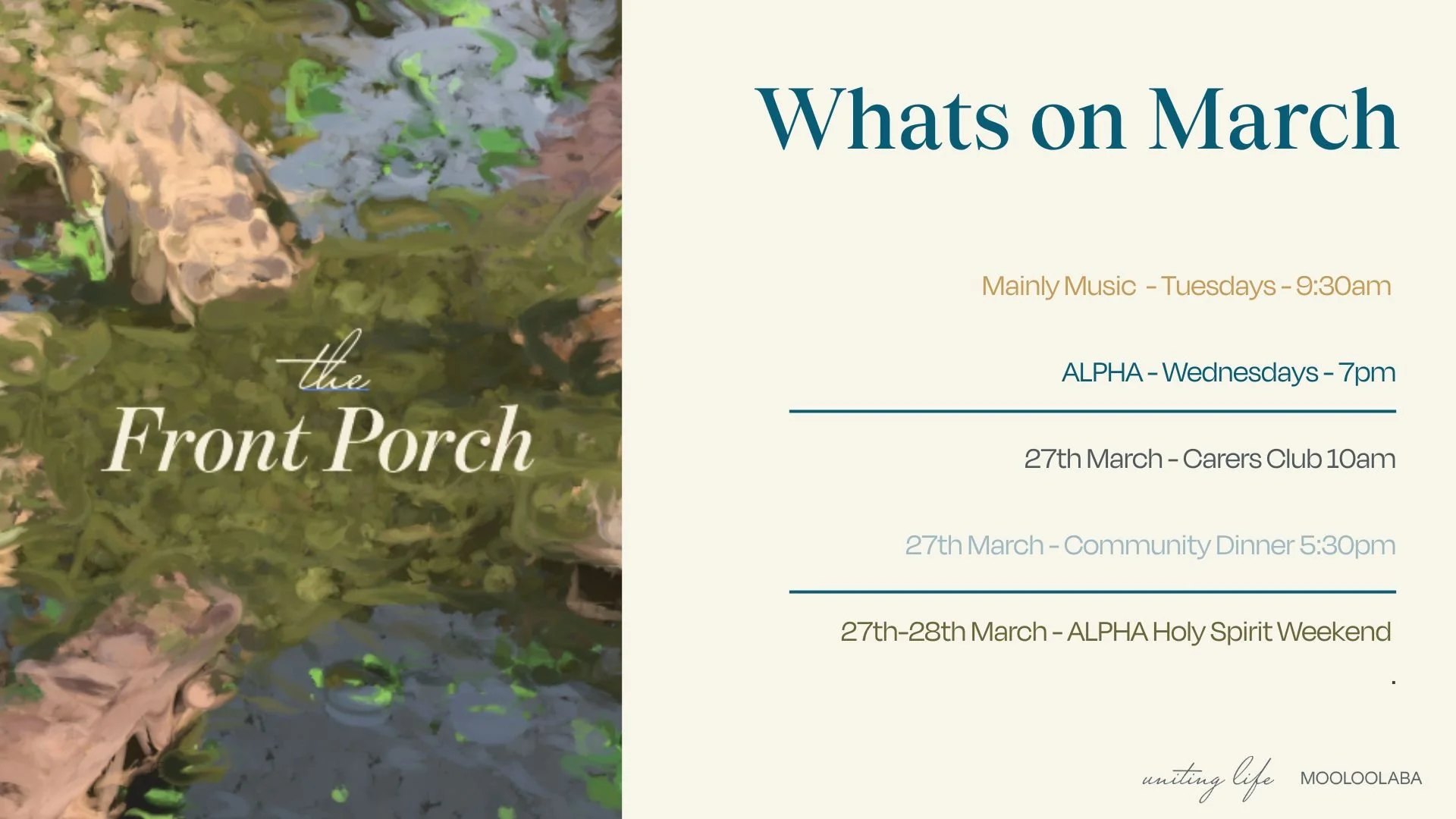 The Front Porch exists to connect people with Jesus and create a space where everyone feels welcome. We serve our community through prayer, practical support, and genuine connection, responding to the needs we see around us.